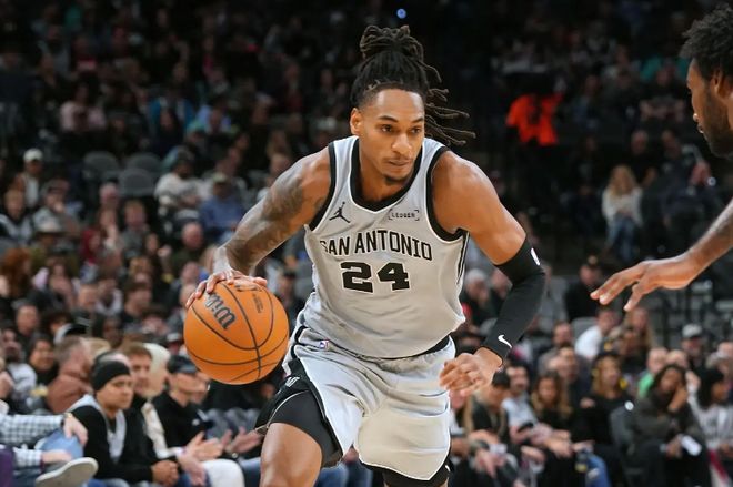 本场比赛中,虽然马刺轻轻松松拿下了一场大胜,但是球队的先发侧翼大将德文-瓦塞尔(Devin Vassell)的表现显然是比较一般的。瓦塞尔全场出场29分52秒,投篮6中0,三分线外3中0,罚球6中5,得到了5分5篮板3助攻1盖帽的数据,还有1次失误和1次犯规,正负值为+24。瓦塞尔在本场比赛中算是完全没有发挥出自己的特点,他甚至都没有命中一记投篮,没有办法靠运动战得到1分,这样的表现对于一名优秀得分手和优秀投手来说绝对是无法接受的。瓦塞尔本身也不是一名可靠的防守者,他在防守端虽然非常积极,但也很难起到更大的作用。不过即使是在这种情况下,马刺还是轻轻松松战胜实力不俗的对手,确实是令人有些意外的。