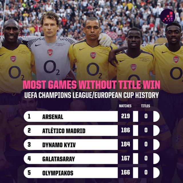 目前,阿森纳在英超积分榜上处于绝佳位置,他们有望自2004年以来首次捧起英超冠军奖杯。而在本周中,枪手的注意力将再次转向欧冠赛场。无论是在现行赛制下,还是在欧洲冠军杯时代,枪手从未染指过欧冠冠军奖杯。